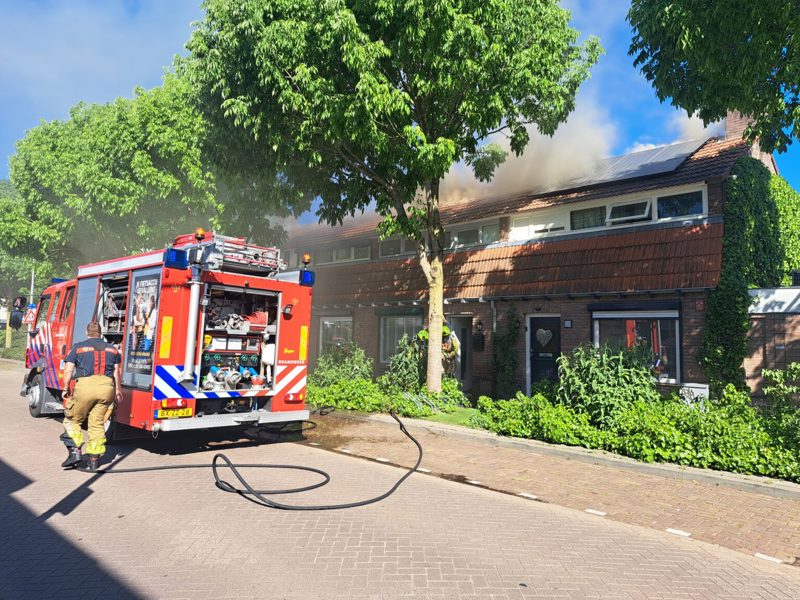 Er woedt brand in vier woningen. Bij één woning staat vooral de bovenverdieping en het dak in brand. Dit is overgeslagen naar de andere drie woningen in datzelfde woonblok. Daar woedt vooral binnen brand, maar dit is niet aan de buitenkant te zien.